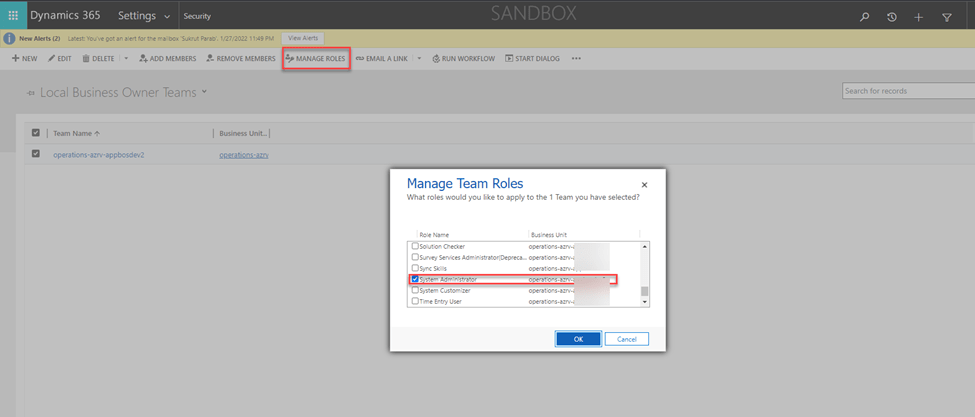 One caveat to assign System administrator role to this root business unit is, all users in the root business unit will inherit the security role.