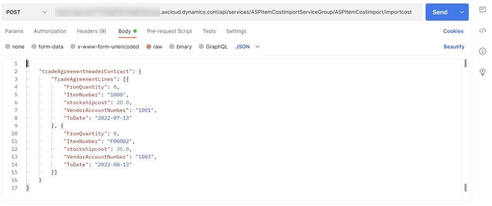 https://YourD365URL /api/services/ASPItemCostImportServiceGroup/ASPItemCostImport/importcost