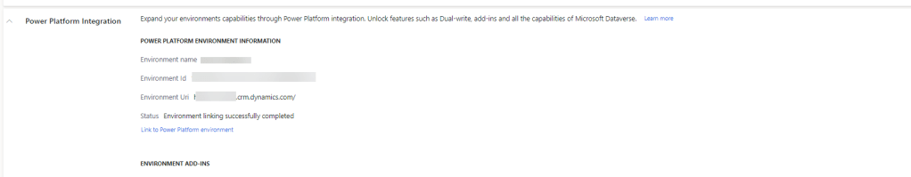 Once the enviornment linking is done successfully, you can check the status in the power platform integration section in LCS as shown below-
