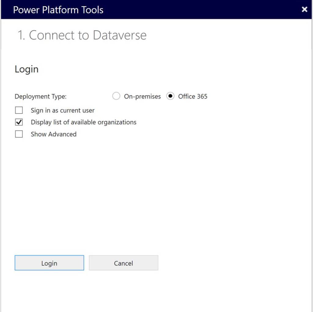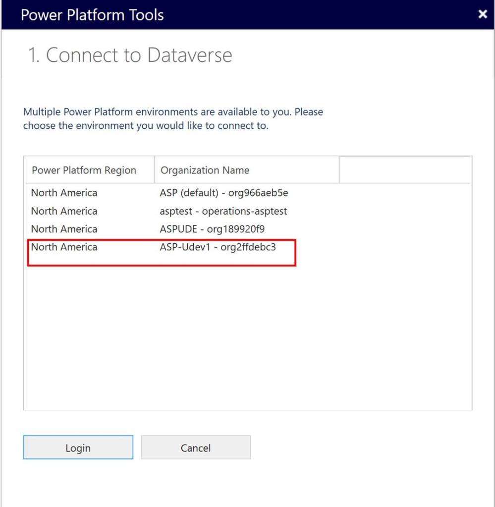 You should be using your login which has access to PPAC. Once you log in, all environments are going to be visible to you as shown below. Select environment which you have deployed and install Dynamics 365 developer tools and click Login.