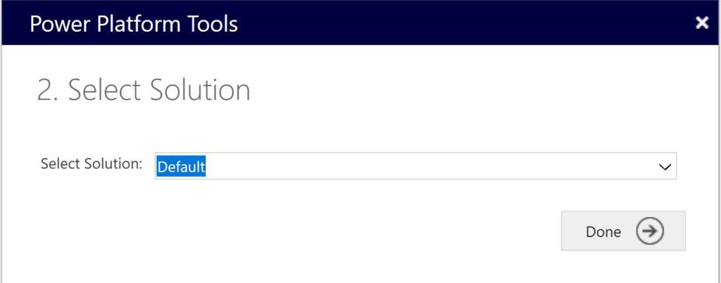 Once it connected, following window is going to appear where you are going to select “Default” solution and click done.