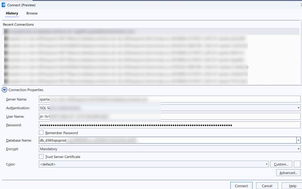 You can then use your local SSMS client to enter details and click on connect button to access the DB as shown below. You don’t have to white list IP like you must be doing it for tier 2 environments in this case.