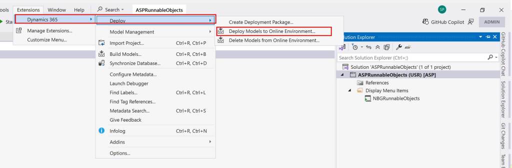 For me to see it in UI, I must first deploy it to F&O environment, and I can do that using following option.